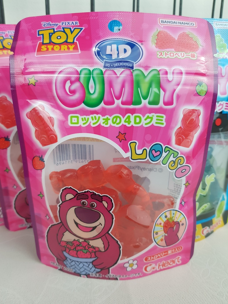 在日本各大超商都可以買到,包裝上特別秀出"4D"的超熱門軟糖~
